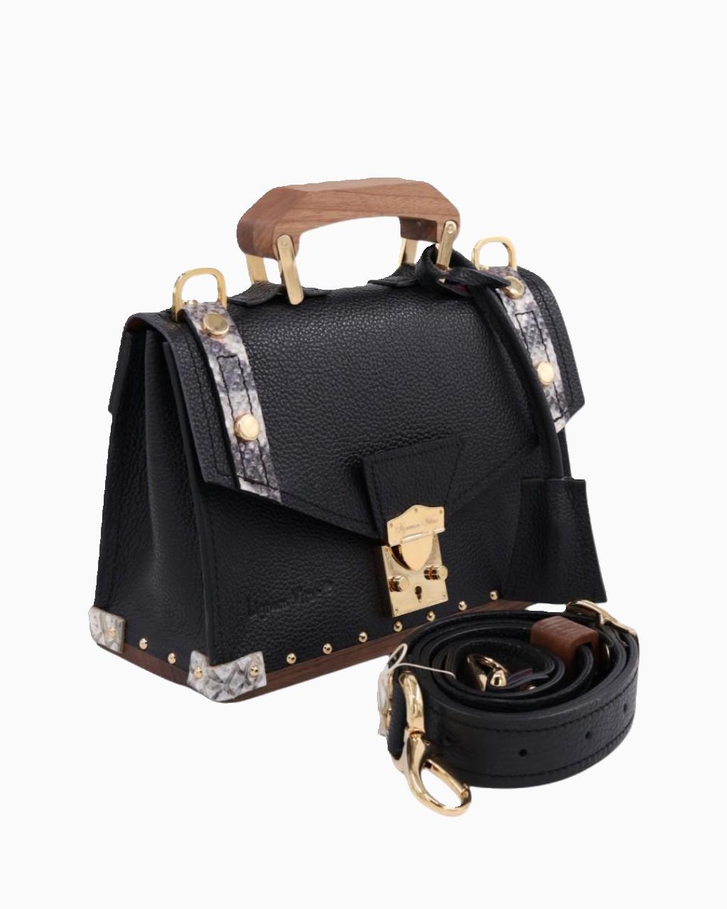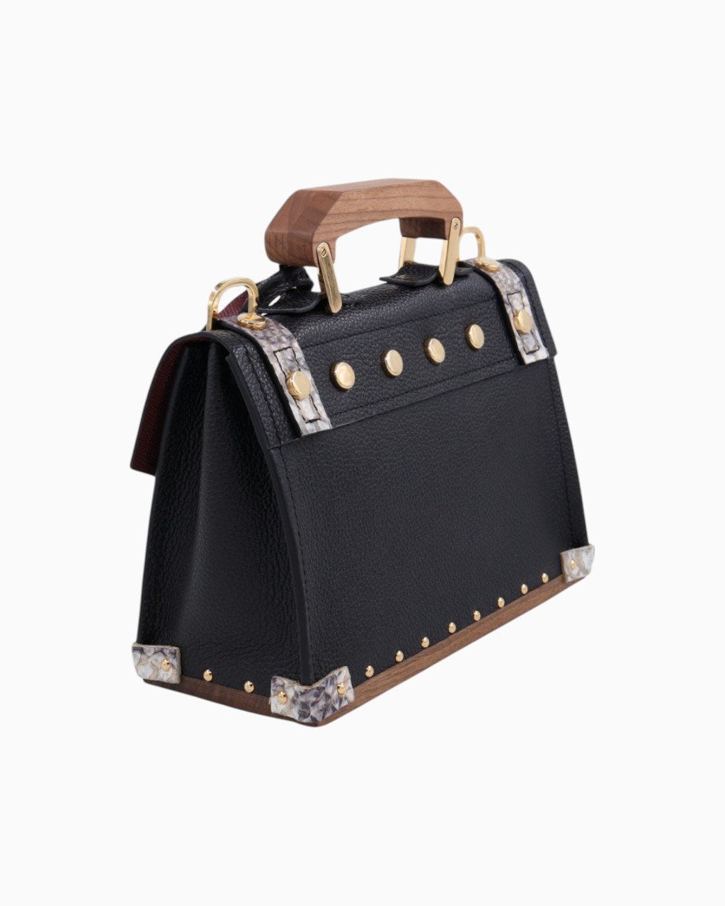 Issu de notre collection Timeless, le sac Fiona incarne l’excellence du détail. Le fond du sac, la boucle de bandoulière et la poignée unique sont façonnés en bois précieux, apportant une touche d’originalité et de raffinement.