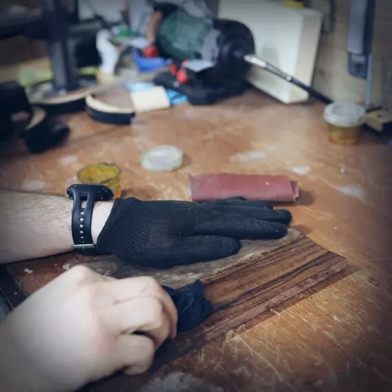 L'étape suivante consiste à sélectionner le morceau de bois qui sera utilisé pour la fabrication du sac. Nous utilisons du bois de noyer en raison de ses propriétés esthétiques et techniques. Après avoir choisi le morceau de bois, celui-ci est découpé et façonné selon le modèle en cours de réalisation.