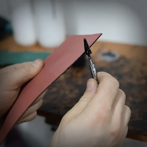 La protection du cuir implique l'imprégnation ou l'application de revêtements spéciaux, visant à maintenir la durabilité des couleurs, à protéger le cuir des influences extérieures et à faciliter son nettoyage. La teinture des bords a une fonction esthétique et représente un processus très minutieux et exigeant, sans tolérance pour l'erreur.
